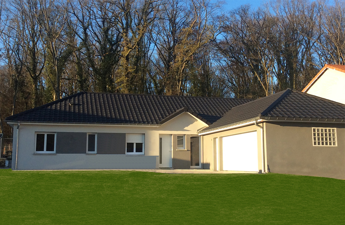 Jolie maison de plain-pied réceptionnée par nos clients à Créhange en Moselle. Elle se compose d’une entrée donnant sur un bel espace de vie de 45 m², 4 chambres dont une suite parentale, une salle de bain avec douche à l’italienne et baignoire, un grand garage de 45 m² et un cellier.